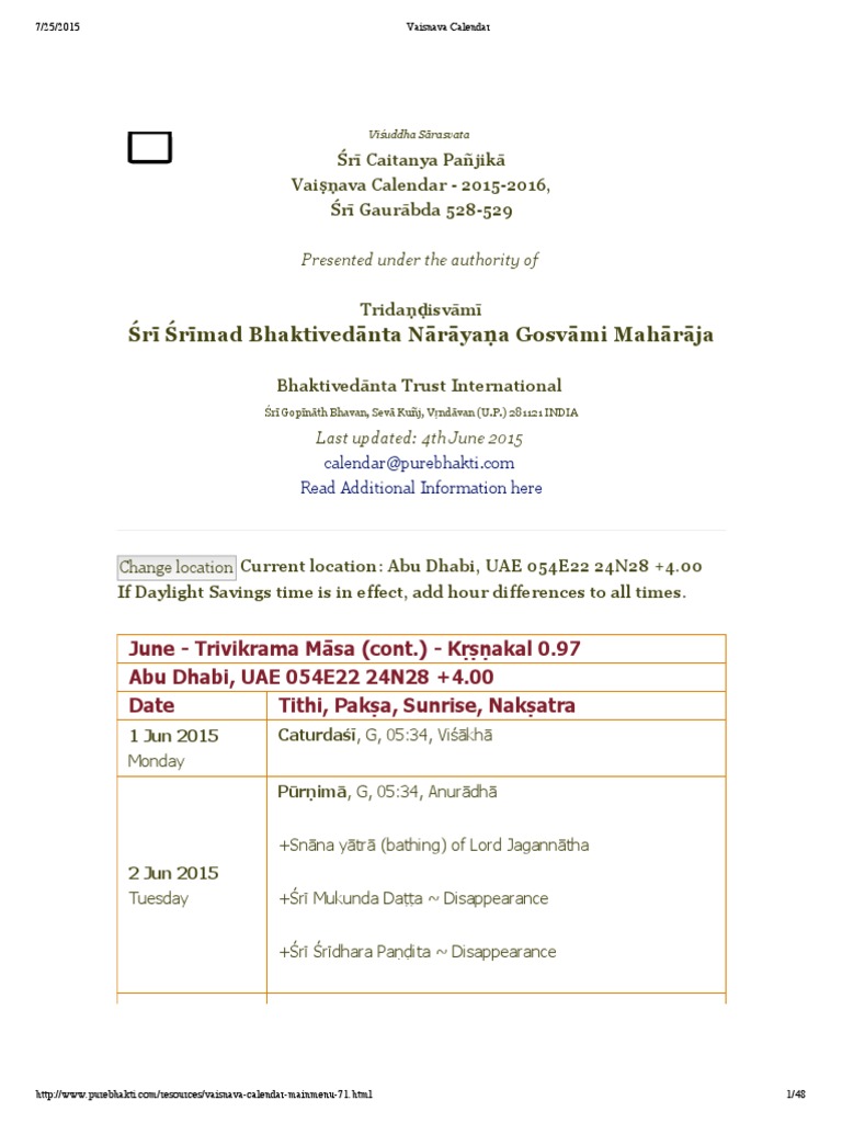 Vaisnava Calendar 2025. This page displays day's significant events or. This page displays day's significant.